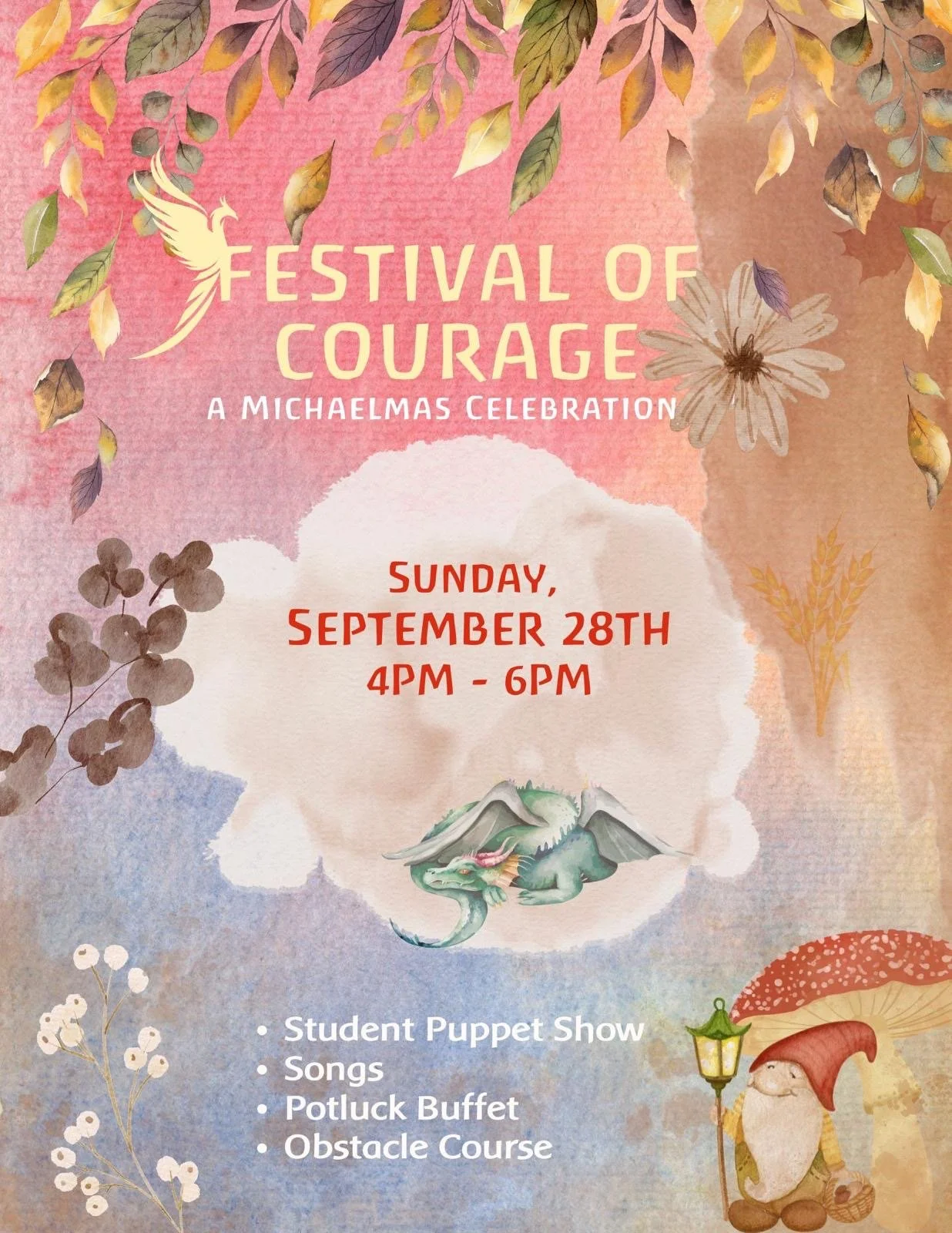 Join us Sunday, September 28th from 4-6pm for a student puppet show, songs, potluck, and an obstacle course for children!